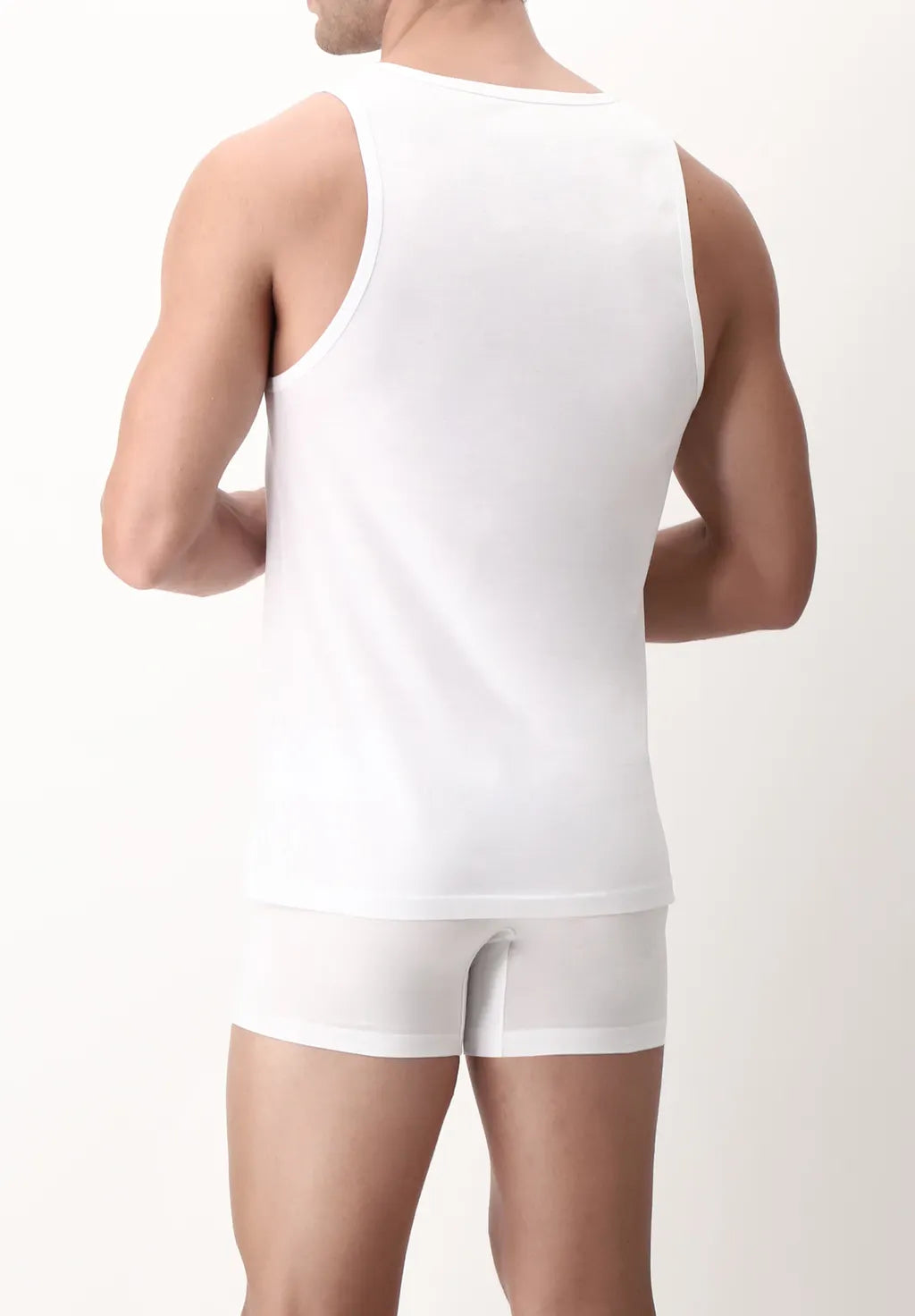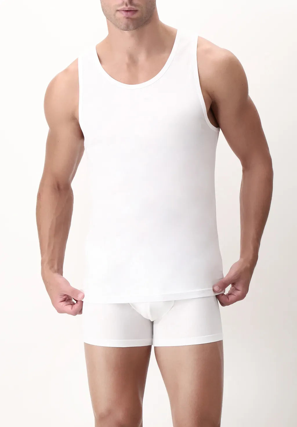 Cotone 100% dal fitting moderno ed impeccabile per questa canotta a spalla larga. Grande libertà di movimento, cuciture extra piatte in microfibra e senza etichetta, giromanico anatomico, per il massimo dei comfort e della vestibilità.