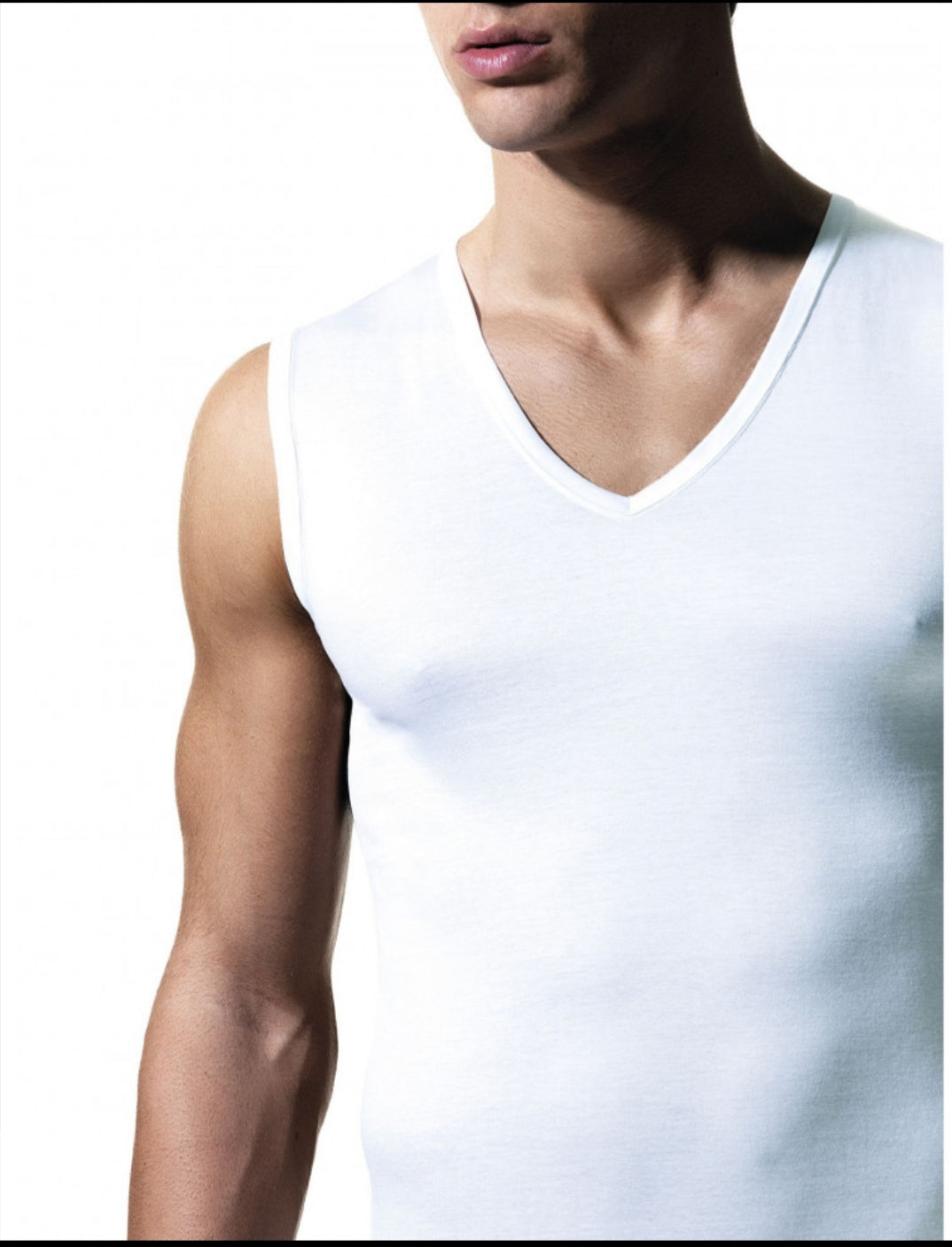 Maglietta senza maniche scollo a V in pregiato e freschissimo Filo di Scozia