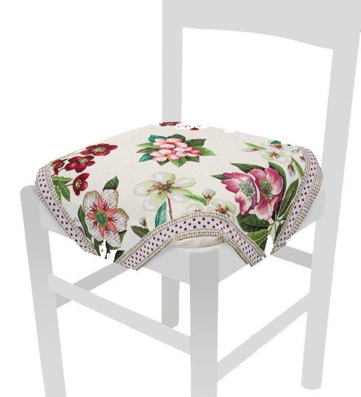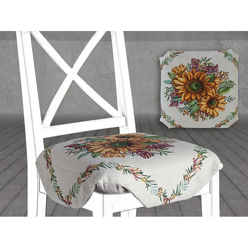 I cuscini della serie Piovra Emy sono realizzati in tessuto gobelin con fasce laterali e gancetti nella parte inferiore con ottima vestibilità anche per le sedie più particolari.