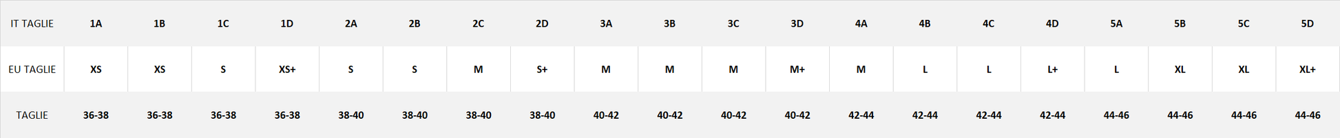 Scegli la tua taglia seguendo le informazioni delle tabelle seguenti