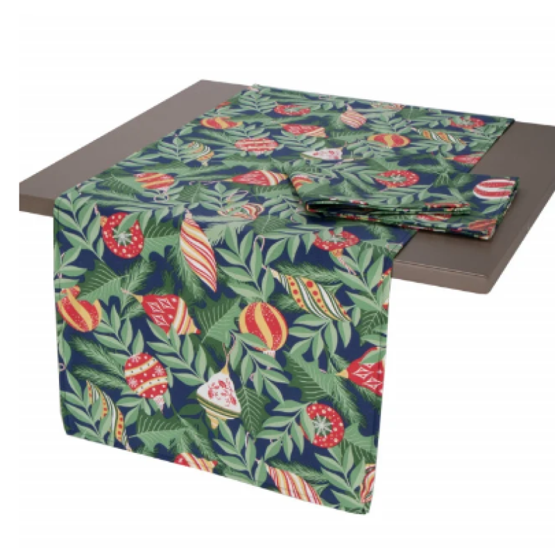 Per una rilassante colazione o una serata in famiglia, il runner Adorn, stampato su panama di puro cotone, è l accessorio ideale per esaltare la tua tavola, grazie a due pratici ed eleganti tovaglioli in coordinato e alla sua stampa originale.