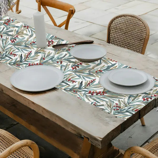 Runner Winter - Portare l'eleganza in tavola è fondamentale per accompagnare i pasti con stile e buon gusto, anche durante le feste di Natale. Il nuovo runner Winterr della collezione Natale in tavola di VallesusaCasa è stampato con pigmento ad effetto metallizzato su panama di puro cotone: una piacevole alternativa alla classica mise en place. 60 anni di esperienza e la produzione interamente italiana garantiscono qualità e stile unici; tutti i nostri prodotti sono certificati Oeko-tex.