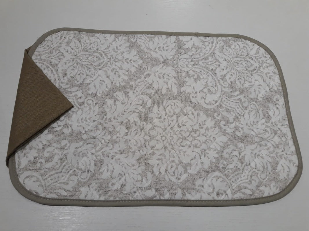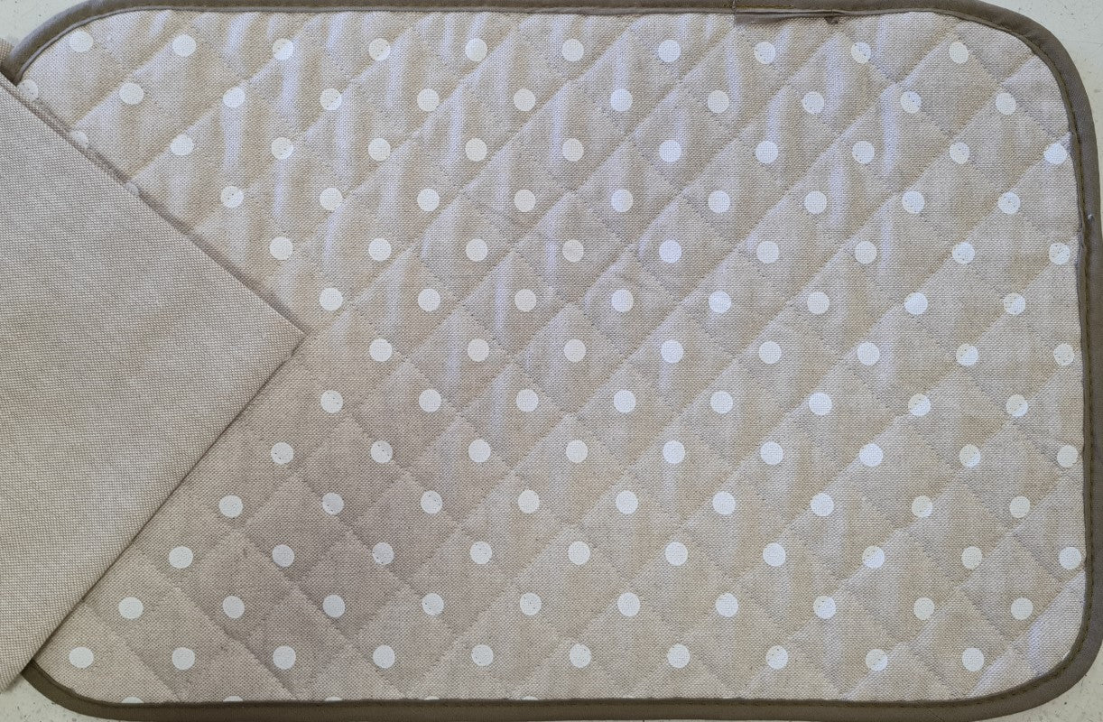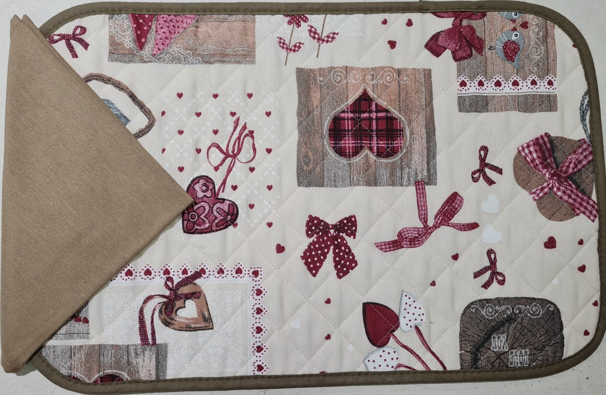 Il tessuto è trapuntato e rifinito con coda di topo nella stessa tinta del tovagliolo.