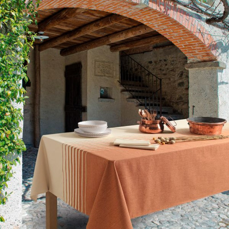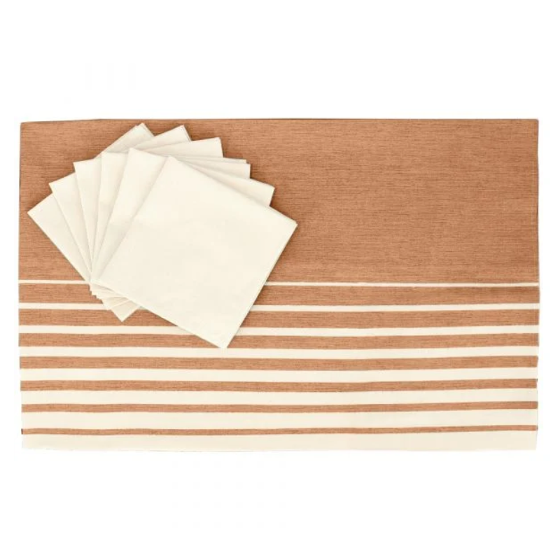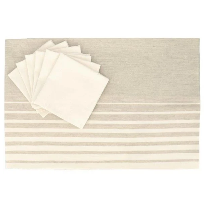 Tinte naturali per la tua MISE EN PLACE con il SERVIZIO TAVOLA ORIZZONTE della COLLEZIONE NATURAE. Composto da tovaglia e tovaglioli coordinati, in saia di puro cotone. Nato per rendere speciale ogni tuo momento a tavola. Il finissimo e morbido puro cotone di GABEL, leader nella BIANCHERIA CASA dal 1957, garantisce qualità e resistenza, riconosciuta anche dalla certificazione Oeko-tex. Ideato, tessuto, stampato e confezionato interamente in Italia.