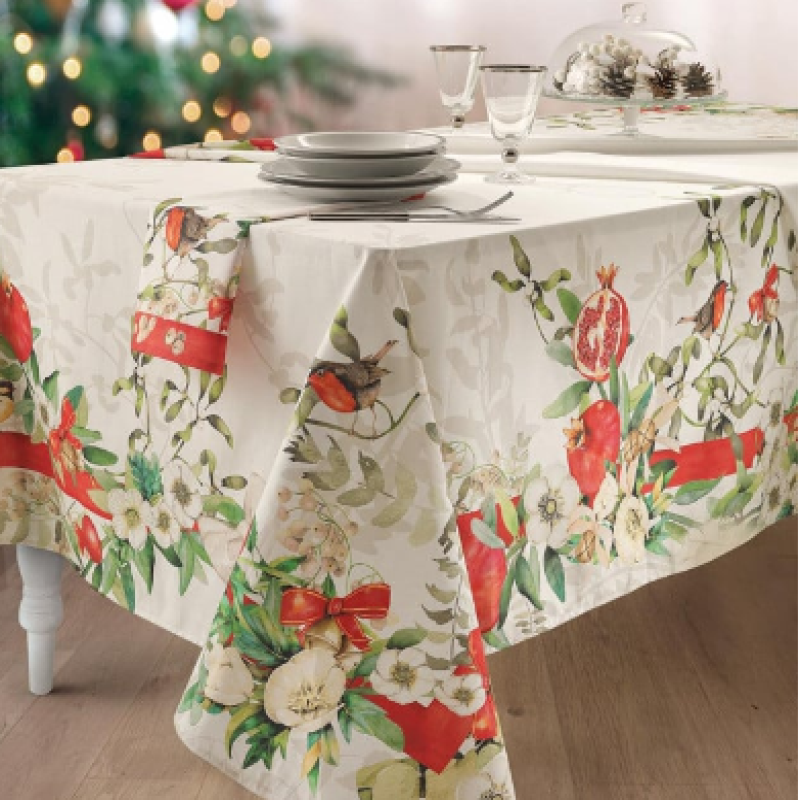Il Natale è magico con Royal, la nuova tovaglia natalizia della collezione Buon Natale di Gabel 1957. Stampata con tecnica digitale su panama di puro cotone con stampa floreale per ricreare un ambiente magico ed accogliente.