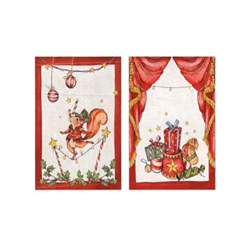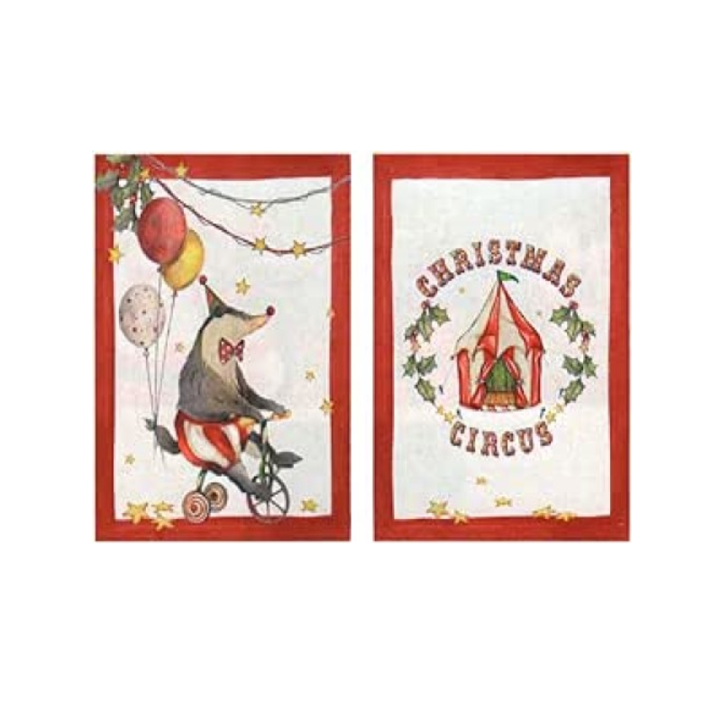 Set 2 strofinacci Circus - Una divertente stampa circense con Circus, la nuova linea della Collezione Buon Natale di Gabel 1957. Stampata con tecnica digitale su panama di puro cotone, motivo piazzato. Disponibile in 3 varianti. Dimensioni: 50x75cm