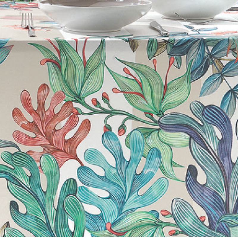 Nuovo stile per la tua mise en place con EDEN, la TOVAGLIA della COLLEZIONE COLORLAB di GABEL 1957. Stampata su panama di puro cotone, per tavolo rettangolare. Prodotta con orgoglio in Italia.