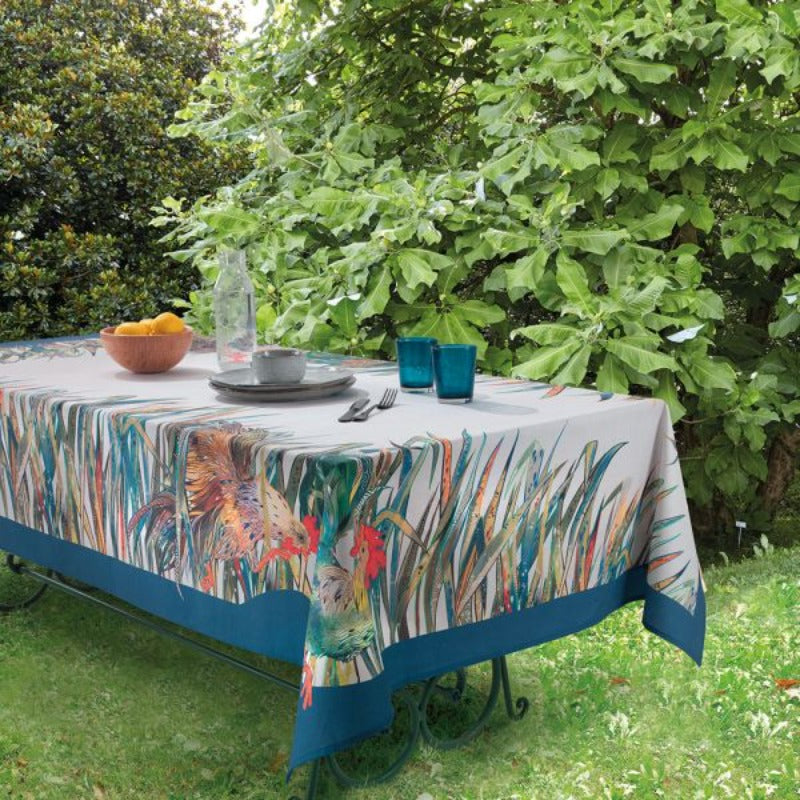 Tovaglia Rettangolare Gallus - Un anticipo di primavera con Gallus, la nuova tovaglia rettangolare della Collezione Colorlab di Gabel1957. Stampata con tecnica digitale su panama di puro cotone, in un unica variante colore ottanio, è disponibile nella dimensione 6 posti (cm150x180), 8 posti (cm150x200) e 12 posti (cm150x270).