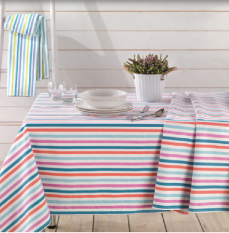 A tutto colore con MARSEILLE, la TOVAGLIA della COLLEZIONE BIANCO PROVENZALE di GABEL 1957. Realizzato in panama di puro cotone, disponibile nella dimensione rettangolare per 6, 8, 12 persone. 60 anni di esperienza e la produzione interamente italiana garantiscono qualità e stile unici; tutti i prodotti sono certificati Oeko-tex.