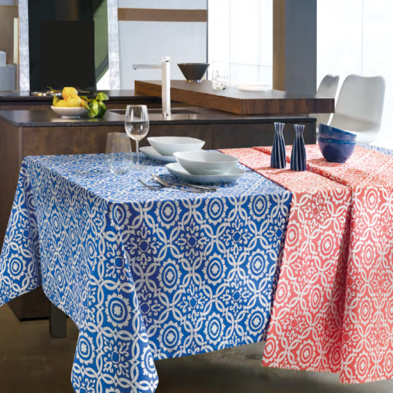 La tavola perfetta per i pranzi e le cene di mezza estate è rigorosamente colorata! Porta colore ed allegria alla tua mise en place con Milos, la nuova tovaglia rettangolare della collezione Bianco di tutti i colori tavola firmata Gabel 1957. Un motivo decorativo stampato su panama di puro cotone nei colori tirreno e corallo.