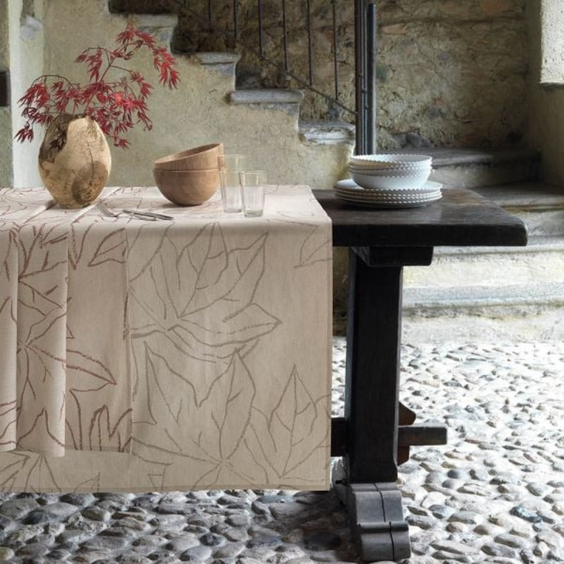 Noi italiani i ricordi più belli li creiamo intorno ad un tavolo! Vesti la tua tavola con EDEN, la TOVAGLIA della COLLEZIONE NATURAE di GABEL 1957. Stampata con tecnica digitale su panama di puro cotone con motivo piazzato. Disponibile nelle dimensioni rettangolari: per 6 persone cm 150x180, per 12 persone cm 150x270.