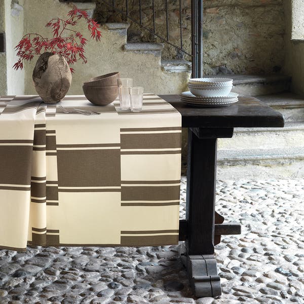 Un gusto che coniuga da sempre la semplicità e l armonia della natura con l eleganza e il fascino della tradizione. La tovaglia Luna è stampata su nuovo tessuto twill in puro cotone realizzato con filati pettinati e ritorti. L armatura diagonale del tessuto e i filati di ottima qualità utilizzati garantiscono una mano estremamente morbida, piena e compatta.Disponibile nelle dimensioni: per 6 persone cm 150x180, per 8 persone cm 150x220 e per 12 persone cm 150x270. Naturae ha stimolato Gabel in un percorso di sostenibilità a 360 gradi: dalla scelta di utilizzare cotoni grezzi non trattati, alle certificazioni di processi produttivi Step, alla ricerca di packaging sostenibili.